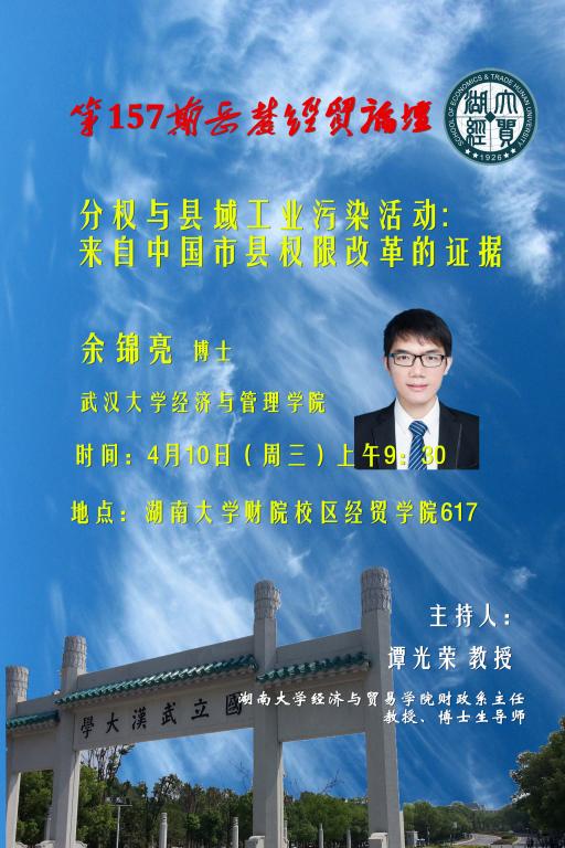 余锦亮博士主要研究公共财政,在《经济研究》、《金融研究》《统计研究》等期刊发表论文10余篇。