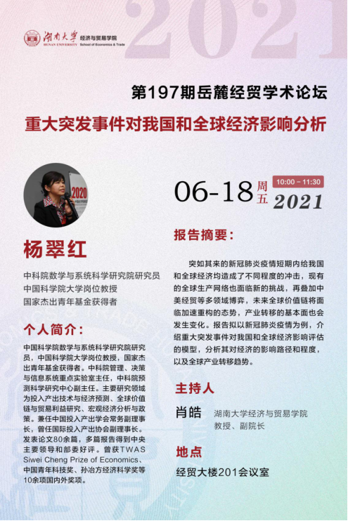 等多领域博弈,未来全球价值链将面临加速重构的态势,产业转移的基本面也会发生变化。报告拟以新冠肺炎疫情为例,介绍重大突发事件对我国和全球经济影响评估的模型,分析其对经济的影响路径和程度,以及全球产业转移趋势。