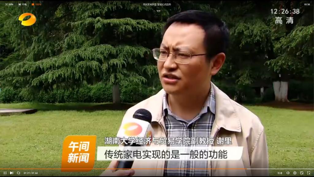 近日,五楼自拍 院长助理、经济系谢里副教授就现在传统家电销售下降、智能家电销售上涨的经济业态,接受了湖南卫视记者的采访。