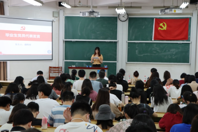 党委书记祝树金教授以“党徽照我远航”主题为毕业生党员们上了一堂专题党课,在重温理论的基础上,寄语毕业生党员在生活和工作中继续严格要求自己,发挥先锋模范作用。