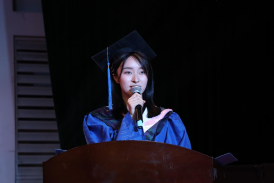 硕士毕业生代表李紫纯、本科毕业生代表徐政杰分别分享了在校园的成长历程,表达了对五楼自拍