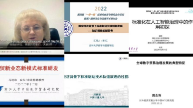 教授郑素丽做出报告。各位学者结合了数字经济背景、人工智能治理、外贸新业态新模式、全球数字贸易治理等不同内容,对新时代的标准化发展进行了探讨。