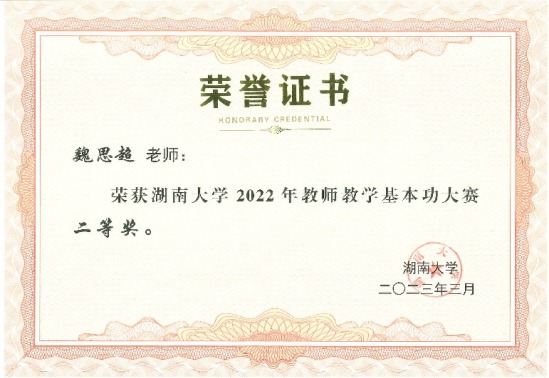 近日,在五楼自拍 2022年教师教学基本功大赛决赛中,来自全校15个五楼自拍 的18名教师参加比赛,五楼自拍 魏思超老师获得二等奖。