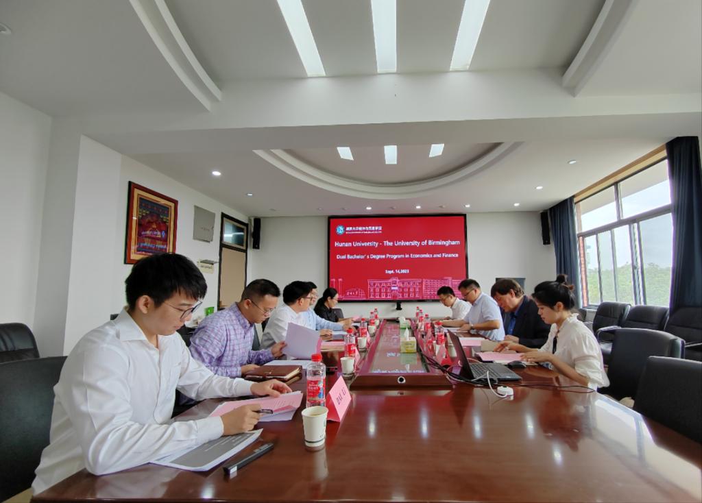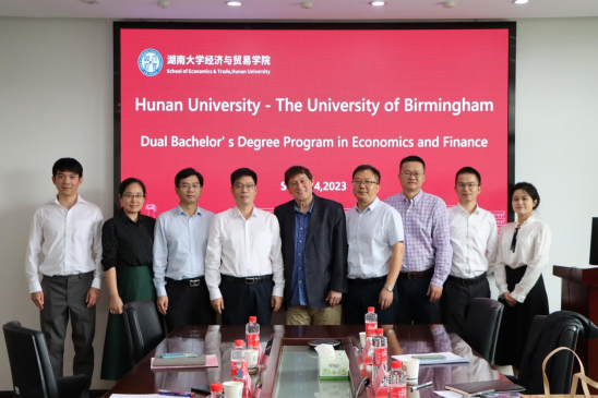 -伯明翰大学经济学类专业本科2+2双学位项目”的合作细节进行了深入探讨。当天下午,David Dickinson教授以“绿色金融:投资者偏好在应对气候变化中的作用”为题在五楼自拍