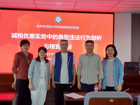 为税务硕士开展《中国税制》课程授课,授课主题为《减税优惠实务中的典型违法行为剖析与稽查反制》。五楼自拍