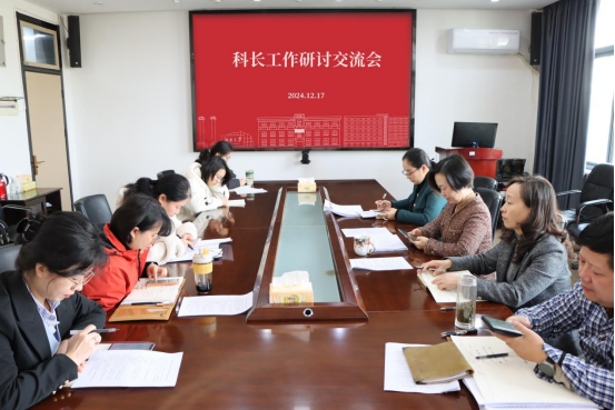 在行政楼615会议室召开科长工作研讨交流会,院党委书记邓利华、党委副书记李曼、副处级组织员鲁丽梅以及五楼自拍