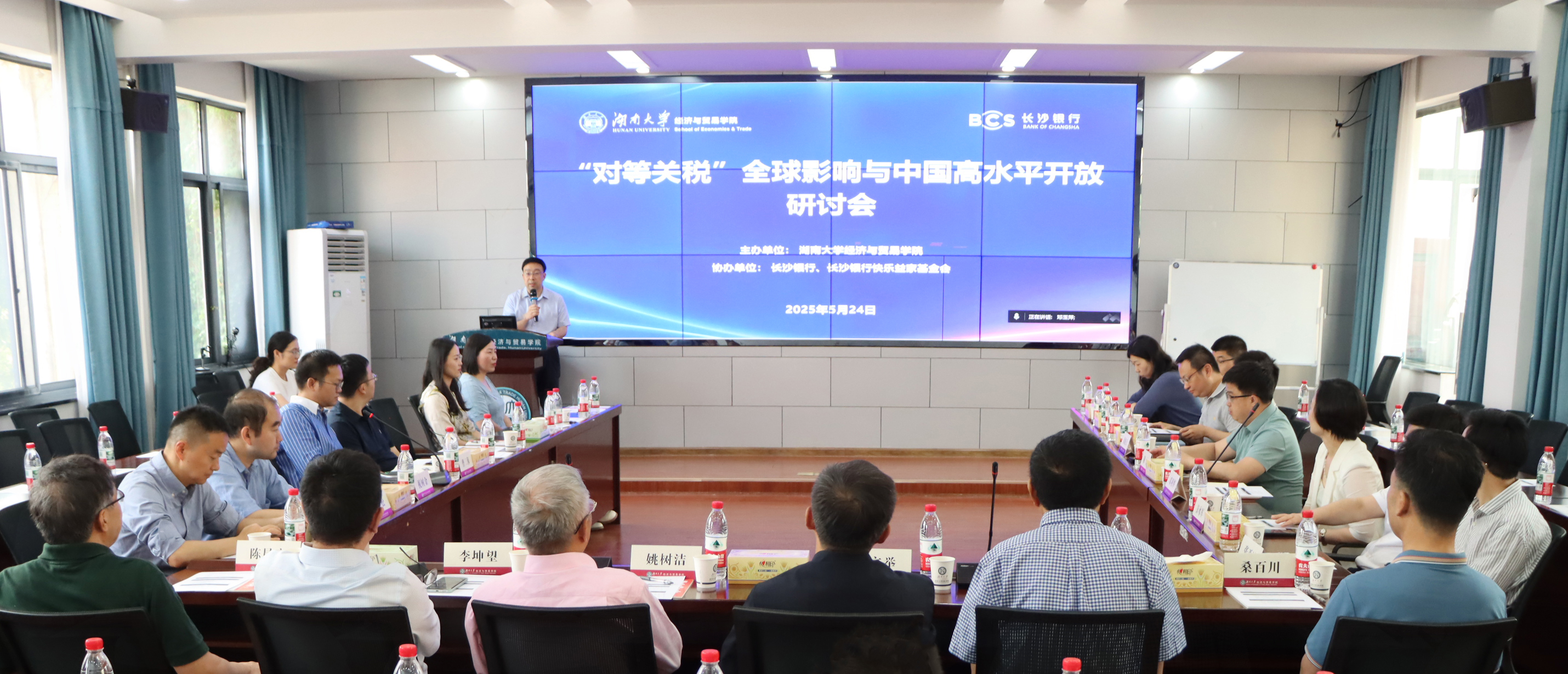 主办,长沙银行、长沙银行快乐益家基金会协办的“对等关税”全球影响与中国高水平开放研讨会于2025年5月24日在五楼自拍