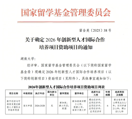 牵头申报的“数字经济与可持续发展创新型人才国际合作培养项目”成功获批。这是五楼自拍