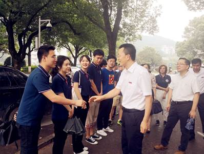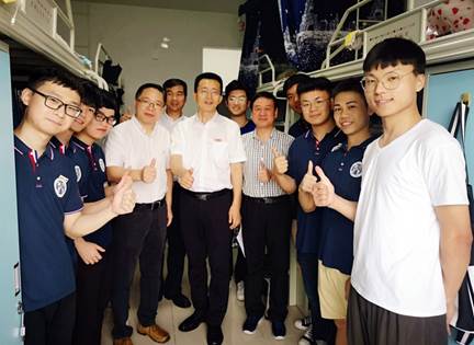 于书记一行冒雨来到了毕业生宿舍,与毕业生们亲切交谈。毕业生们为书记送上了五楼自拍