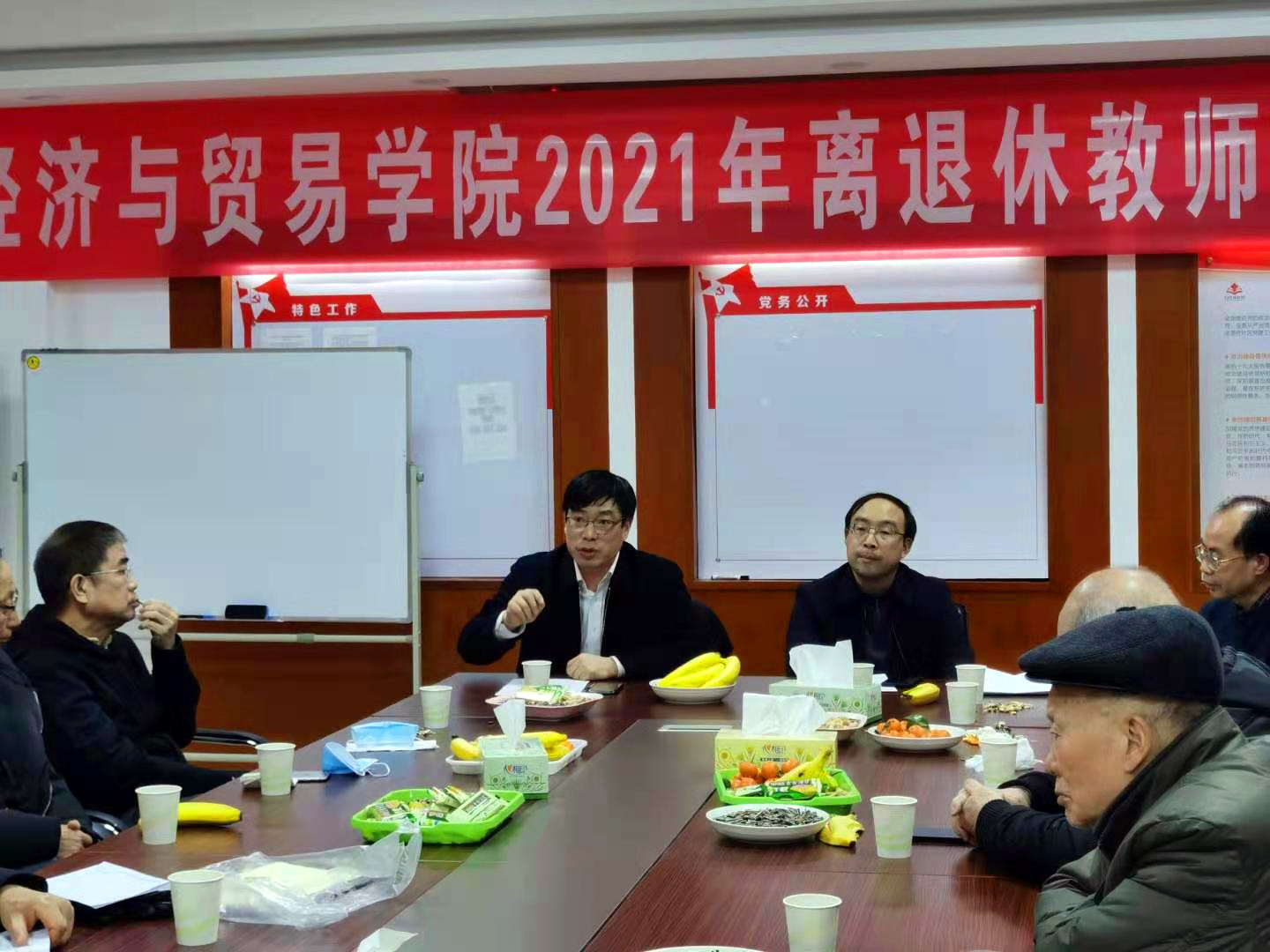 院长侯俊军教授,党委书记祝树金教授,副处级组织员刘周平同志,院离退休工作专干汪新华老师,院办主任肖力老师,院工会福利委员张意湘老师参加会议座谈,大家欢聚一堂,喜迎2021年新春的到来。