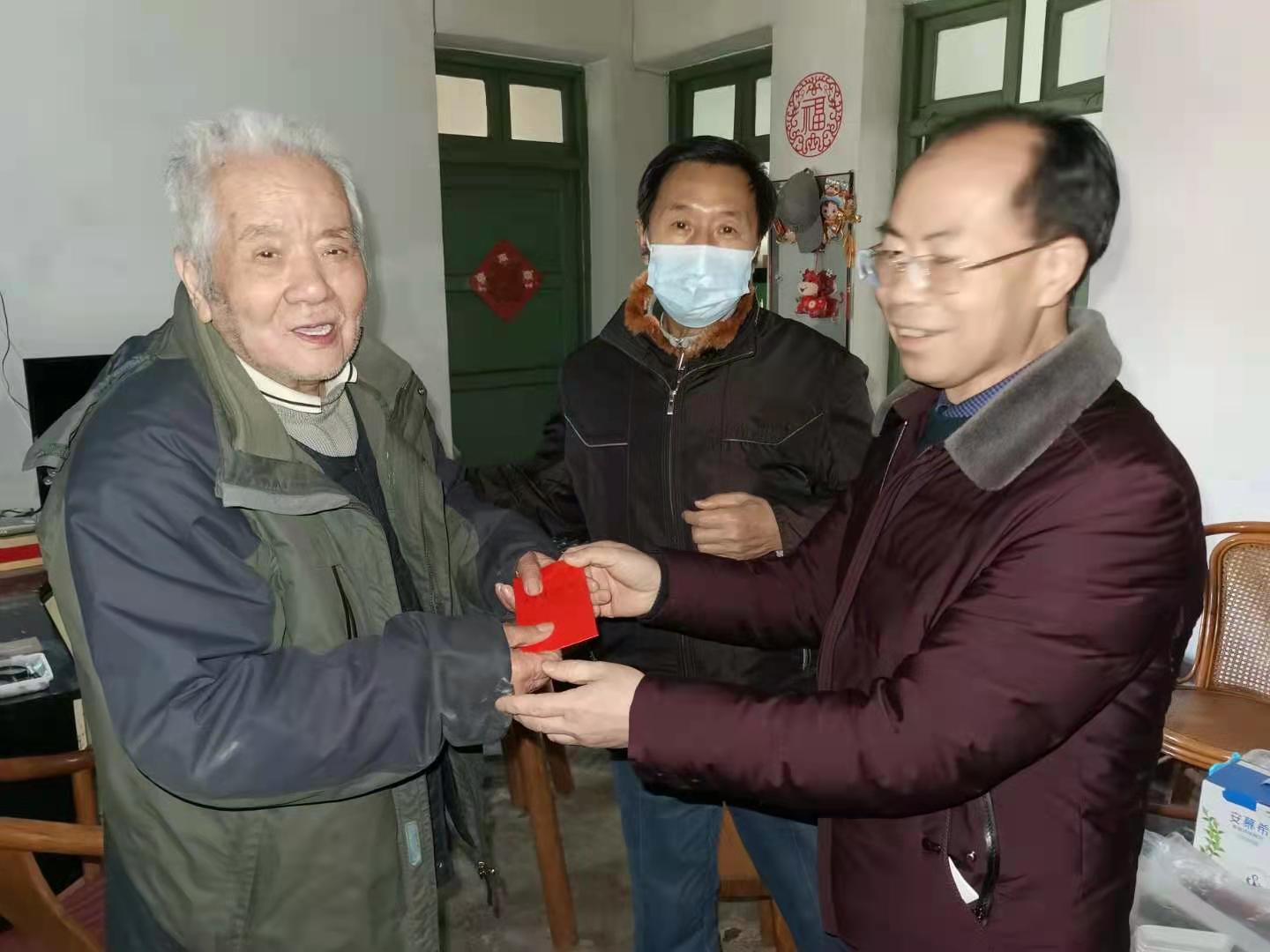 1月29日上午,院副处级组织员刘周平,离退休支部委员、原副院长吴献金,行政支部书记、工会委员、院办主任肖力走访看望了84岁的陈迈英、91岁的王世璋老师等老同志,并送上温暖和关怀。