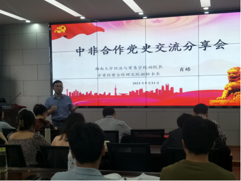 合作研究院执行秘书长肖皓以“中非合作党史交流分享会”为主题进行微党课教学,通过丰富的历史文献和图片,生动地再现了中国与非洲建立合作关系的历史进程,全面展示了中非关系的坚不可摧。