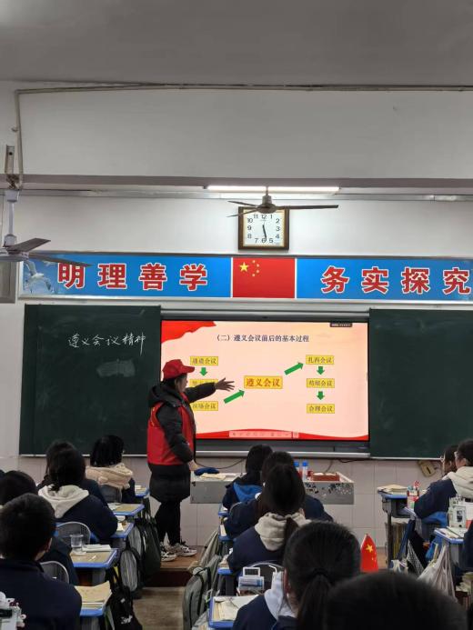 开展遵义会议精神宣讲。她结合第五次反“围剿”失利、红军被迫长征的历史背景,详述会议关键决策,让学生们真切认识到这次“伟大转折”,加深了对遵义会议精神更深层次的理解。