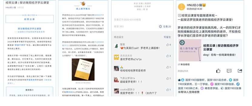 疫情期间,她主动学习了网络授课相关知识,为线上教学的开展提供预案。“云课堂”启动后,她灵活调整授课方式方法,细心讲解每个知识点,引导同学们在课堂上不懂就问、随时讨论、深入思考,扬长避短,充分提高了“云课堂”的授课效率。学生们评价到:“只有这样开阔的课堂,才是最好的课堂,这样的教育才是最好的教育,罗老师的微观经济学绝对能让人感觉是一场洗礼与享受”。