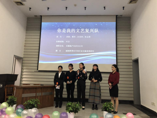 联合主办,活动目的旨在积极搭建课程思政平台,创新财政学、税务学“课程+赛事”模式,提高大学生对知识理解的深度与宽度,有效提高大学生财政与税务知识运用能力。经过活动宣传,初赛吸引了全校共58支队伍,235位同学积极参与,通过税务知识竞赛角逐出8支队伍参加决赛。决赛前,各支队伍分别前往高新技术产业、房地产行业等代表性企业开展调研,以“减税降费政策出台后对不同行业会产生什么影响?”为题进行专题展示。