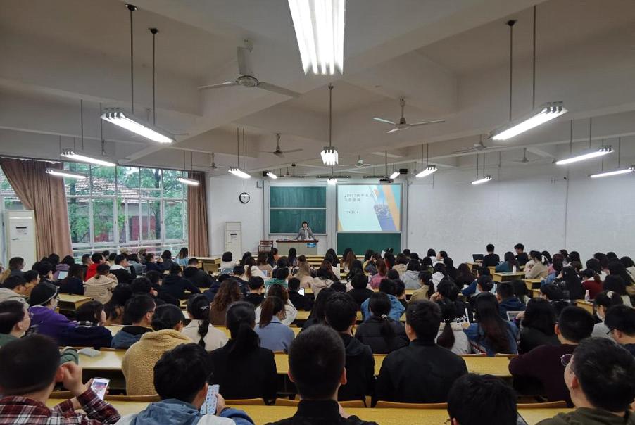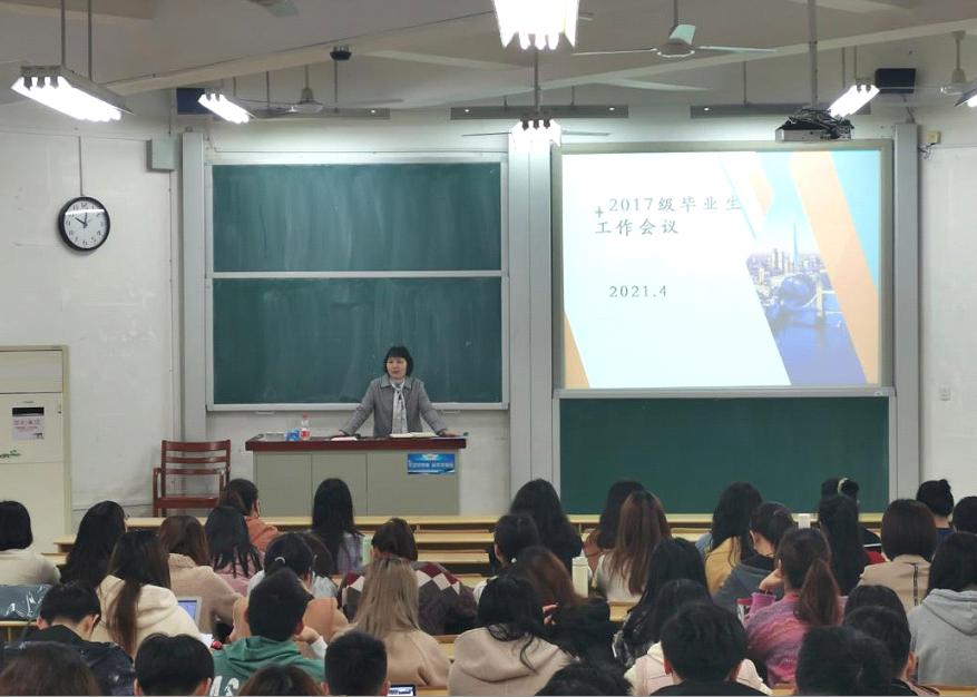 2017级毕业生工作会议在二教顺利进行,全体毕业生参与会议,辅导员周梦老师主持会议。