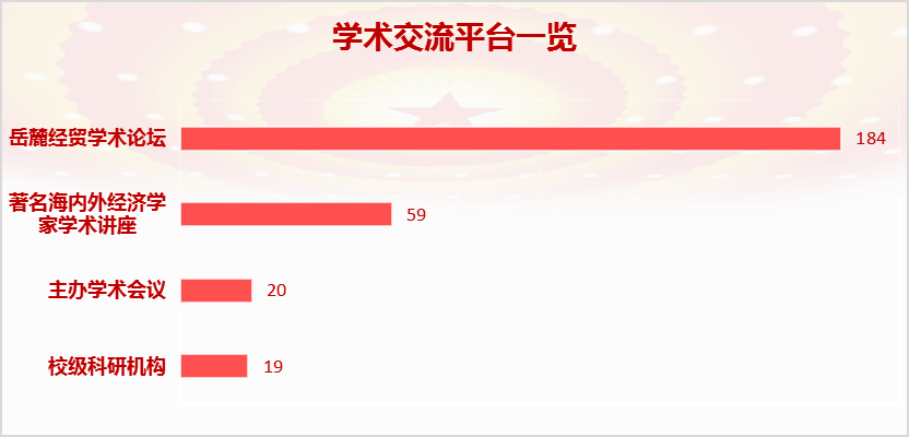 共主办学术会议20场,包括第一届至第四届“标准化与治理”国际学术研讨会、“强力打造内陆港与建设开放强省”高峰论坛,新时代中国特色社会主义财政理论研讨会暨2018年全国高校财政学教学研究会常务理事会等高端会议。邀请国内外首席专家、著名经济学家进行学术讲座共计59场。新增校级科研机构“区域经济研究中心”,目前五楼自拍