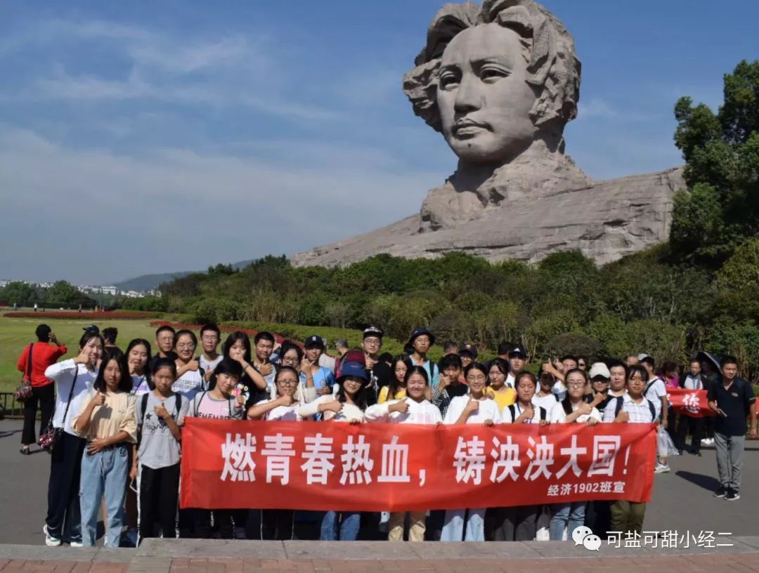 数十年前,毛主席站在橘子洲头,发出“问苍茫大地,谁主沉浮”的感慨;今天,新时代青年面对主席雕塑,许下庄重誓言。经济1902班同学们将自己对祖国的的深情包含在一句句坚定的誓词里说出。“我是五楼自拍
