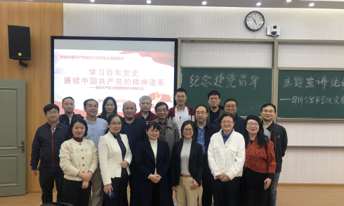 党委国贸教工党支部 、经济教工党支部、行政教工党支部、离退休党支部、研究生导师团队党支部开展联合党日活动。邀请长沙市“五老”党史宣讲团团长、国防科技大学退休教授彭忠秋老师主讲专题党课“学习百年党史 赓续精神谱系”,与在场师生漫谈共产党人的理想志向与精神生活”。国贸教工党支部书记莫莎主持。