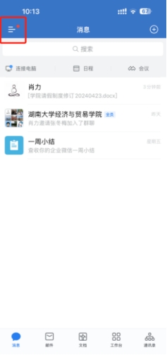 二、打开企业微信,点击左上角,加入“五楼自拍