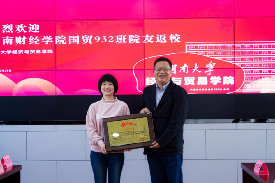 Shujin Zhu, party secretary, said at the ceremony, all the students of class 932 of international trade enthusiastically and selflessly feed their Alma Mater to congratulate on the new decoration of the college building. It will go down in history forever, inspire all faculty and students to work together with alumni and promote the discipline construction work of the school.The construction and development of theschool, teaching and scientific research, talent training are inseparable from the great help of our fellow students. On behalf of the whole faculty and students of theschool, he warmly welcomed the students back to school, who are always the most valuable wealth of the Alma Mater.