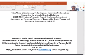 On the evening of April 21, Mammo Muchie, as the member of the ASSAf and professor of Tshwane University of Technology, Made a speech at the closing ceremony of the 2022 BRICS Network University Annual Conference (main online venue) on the theme of ‘Prospects for BRICS Economic Cooperation’.