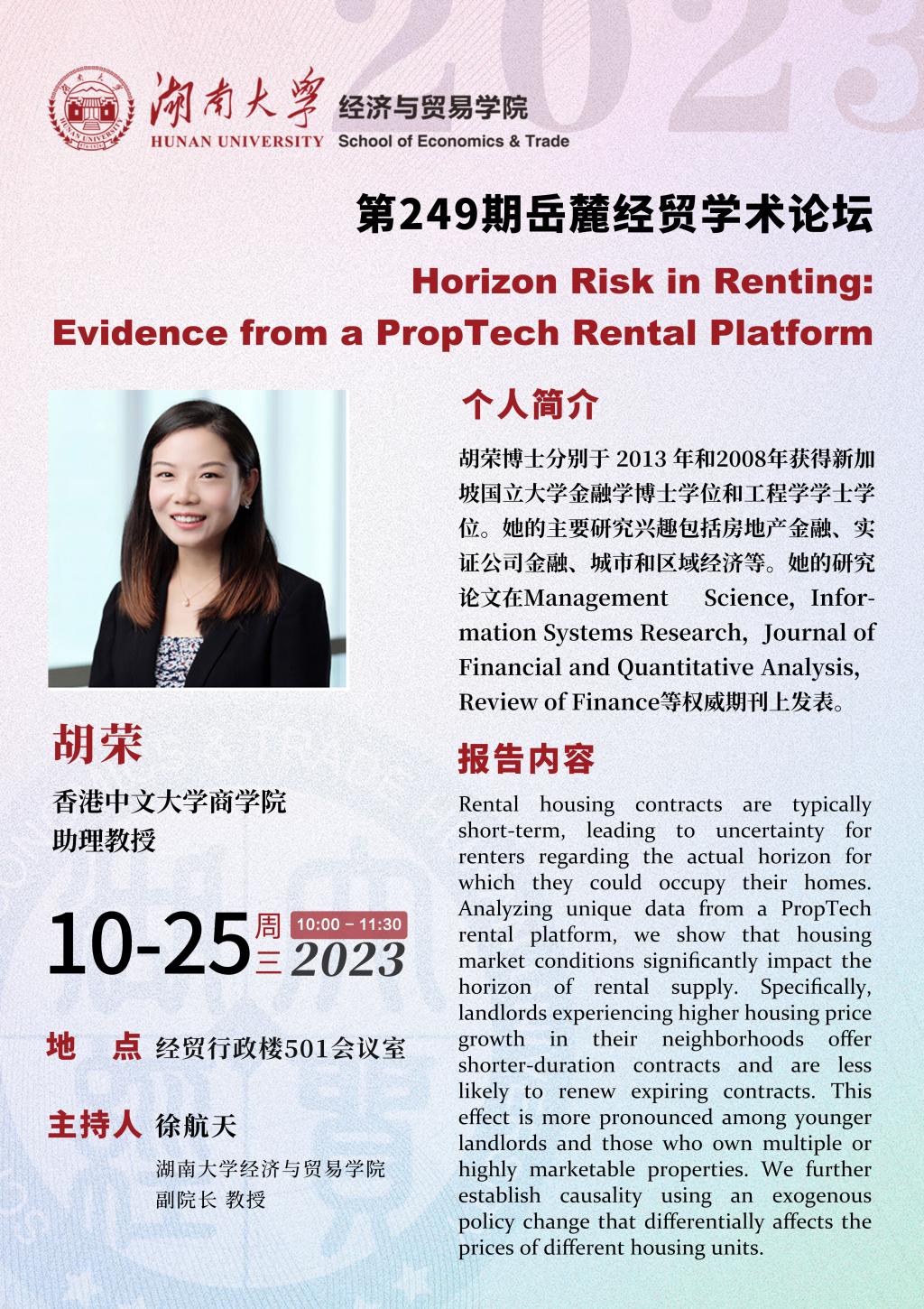 胡荣:Horizon Risk in Renting:Evidence from a PropTech Rental Platform