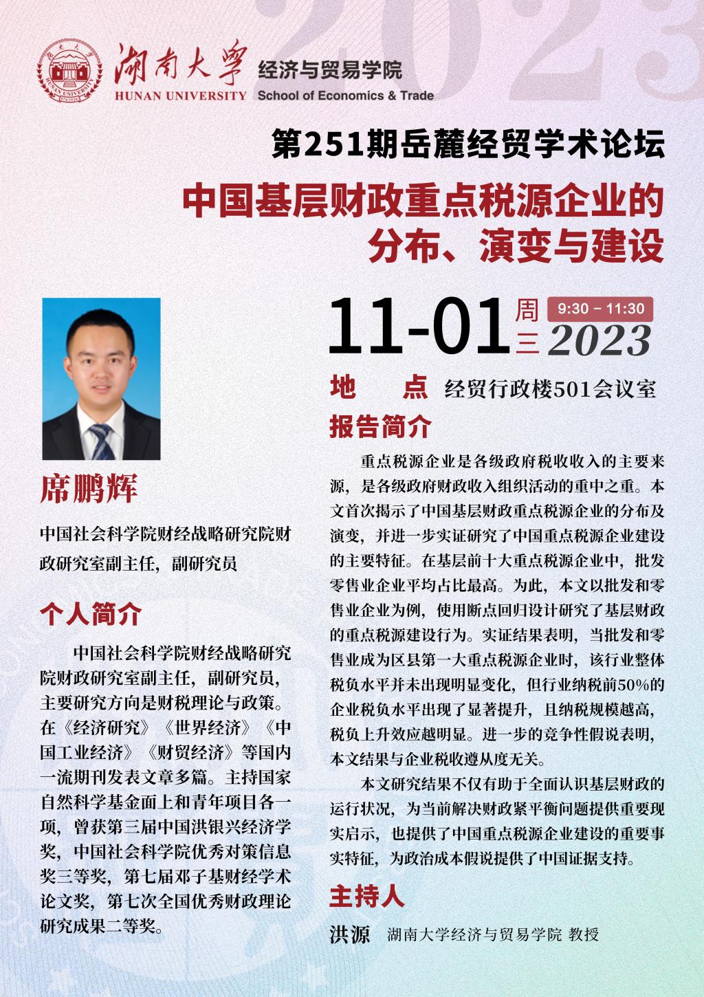 席鹏辉:中国基层财政重点税源企业的分布、演变与建设