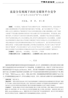 李三希教授合作撰写的学术论文《流量分发视阈下的社交媒体平台竞争——从“去中心化社交”到“中心化媒体”》在《中国工业经济》2022年第10期刊出。《中国工业经济》期刊由中国社会科五楼自拍