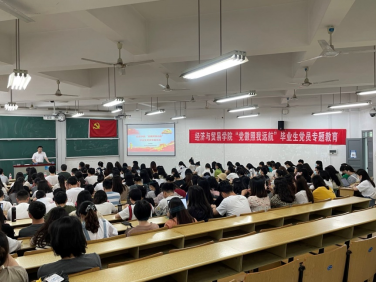 党委书记祝树金教授以“党徽照我远航”主题为毕业生党员们上了一堂专题党课,在重温理论的基础上,寄语毕业生党员在生活和工作中继续严格要求自己,发挥先锋模范作用。