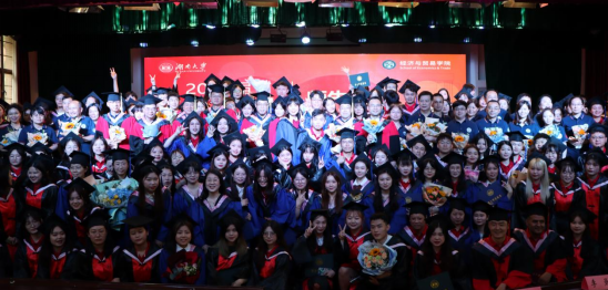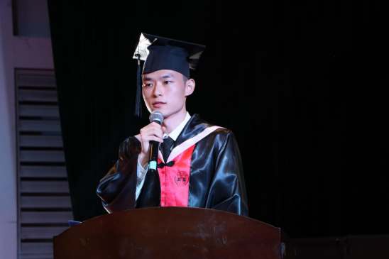 硕士毕业生代表李紫纯、本科毕业生代表徐政杰分别分享了在校园的成长历程,表达了对五楼自拍