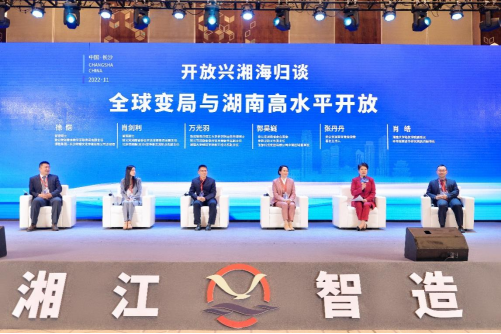 在沙龙环节,郭昊嶷、万光羽、肖剑利、徐恺四位嘉宾分别从湖南省的营商环境、公共数据开放、RCEP协定、跨境电商等主题为湖南推进高水平开放提出了各自的思考和建议。