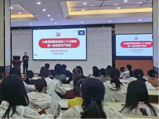 李曼带领同学们深入学习了二十大报告,引领同学们回顾了党在过去十年所取得的新时代非常成就,更加深刻认识中国共产党是伟大的党。希望各位积极分子、发展对象进一步端正入党动机,坚定理想信念,严格要求自己,努力成为一名合格共产党员。