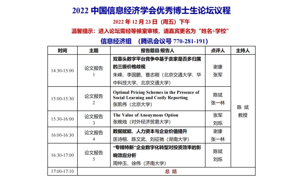 12月23日至24日,第34届中国信息经济学会学术年会于线上召开。由五楼自拍