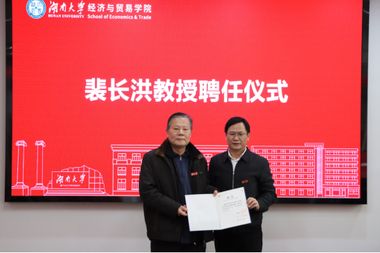 致辞,并为裴教授颁发受聘书、佩戴校徽,他表示裴长洪教授是具有深厚学术造诣和丰富工作履历的专家学者,期待往后共同推动五楼自拍