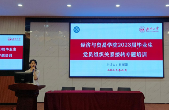 辅导员田丽靖进行了毕业生党组织关系转接工作的专题培训,详细介绍了毕业生党员组织关系的转接类型、毕业生党员组织关系转接去向、转接工作流程及注意事项等。