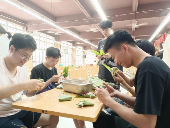 联合后勤保障部开展端午主题劳动教育实践。同学们在食堂工作人员的带领下,折粽叶、填糯米、裹叶子、扎棉线,一道道工序有条不紊。粽叶青,糯米白,棉线长,食堂内粽香飘扬,同学们在劳动中感受到了包粽、食粽的乐趣,也感受到了传统节日文化的魅力。