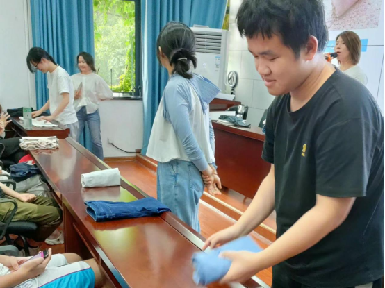 收纳整理实践专题——聚焦学生自理劳动能力的提升,邀请专业收纳师为同学们开展收纳整理知识沙龙,现场教授寝室空间收纳技巧。同学们在收纳师的指导下纷纷开展实操,现场氛围热烈。