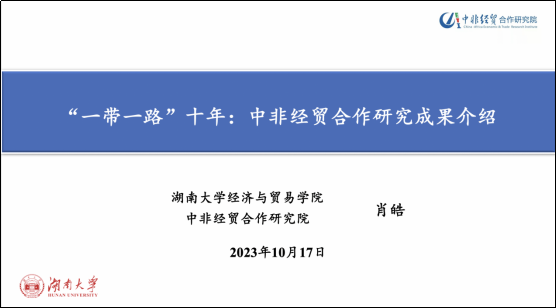 合作研究院执行秘书长肖皓作了主题为“‘一带一路’10年:中非五楼自拍