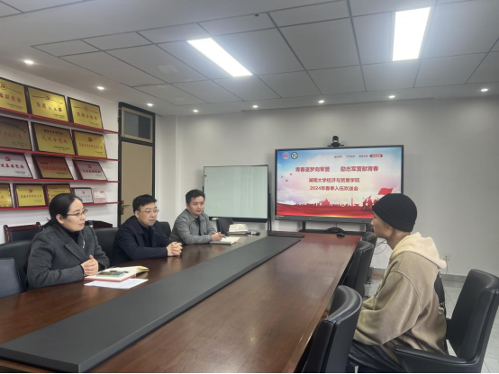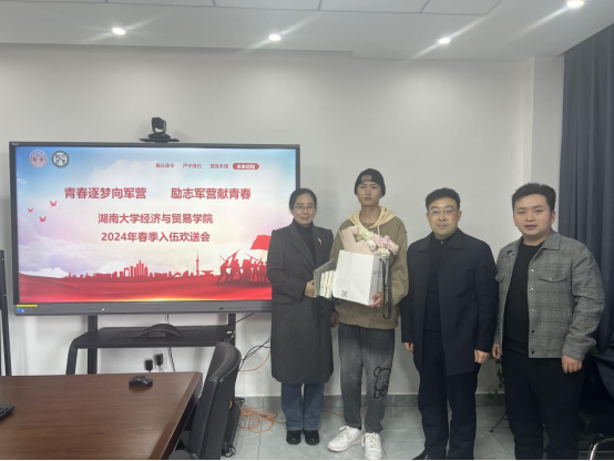 为光荣入伍的本科2022级学生谢宽举行欢送会并进行座谈交流。五楼自拍