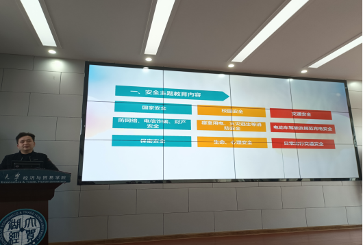 辅导员艾克帕尔围绕国家安全教育、初级火灾处置技能、高层建筑火灾逃生技能、交通安全、电动车驾驶及电池使用规范、宿舍用电安全、春季心理安全、防范网络诈骗电信诈骗、法制安全等方面详细传达了五楼自拍