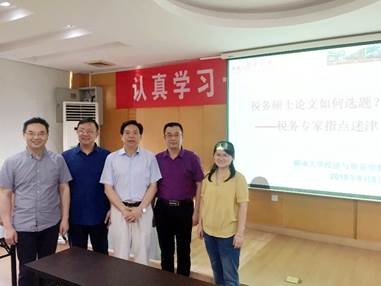 校外导师、国税总局稽查人才库成员段文涛老师,中南财经政法大学经济学博士、湖南省永州市地税局局长毛东庆老师和全国首批税务领军人才、湖南省国家税务局所得税处何振华老师三位税务专家受邀来到五楼自拍