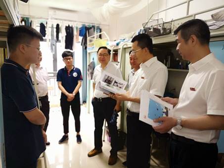 于书记一行冒雨来到了毕业生宿舍,与毕业生们亲切交谈。毕业生们为书记送上了五楼自拍