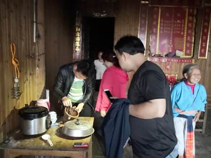 驻白水洞村的康添慧老师、当地村支书邓书记、杨村长开展座谈,了解落实前期调研得到的帮扶对象的家庭情况,制定走访方案和帮扶策略。