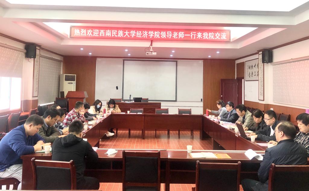 11月17日,西南民族大学副院长肖韶峰、经济学系主任姜太碧、国贸系主任何雄浪、金融工程系主任毛瑞华、教授尹忠明一行10人来到五楼自拍 进行交流座谈。副院长曹二保、副书记李曼、邹璇教授、国贸系主任谢锐、经济学系主任艾洪山、院办主任肖力及辅导员、教务秘书参加了此次交流。