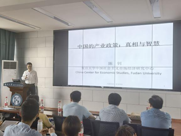 学术委员会副主任陈钊教授开展了题为“中国的产业政策:真相与智慧”的学术报告。本次学术报告由院长侯俊军教授主持,院党委书记祝树金教授、谢里教授、谢锐教授、刘征驰教授、华岳副教授、肖海翔副教授、汪慧霞副教授与近百名研究生听取了此次学术报告。