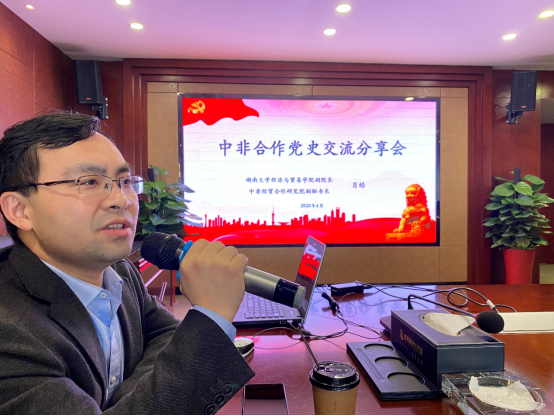 合作研究院执行秘书长肖皓教授以中非合作党史为主题进行微党课教学,结合丰富翔实的历史文献和历史图片,生动、真实再现中国与非洲建立合作关系的历史进程,全面展示中非关系的坚不可摧。