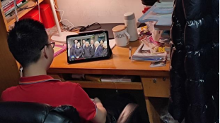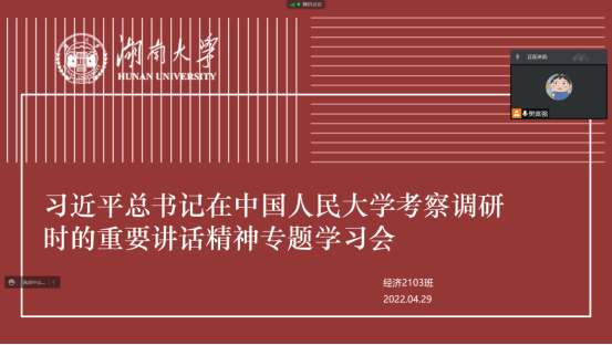 国贸2001班团支书李莎莎带领支部成员学习讲话精神。