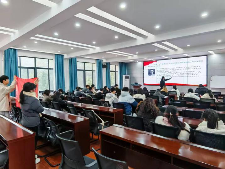 院行政楼201向经济学类2401班开展了遵义会议精神宣讲。“艰难困苦,玉汝于成 。”宣讲团结合史实,详述遵义会议如何力挽狂澜,让学生真切感受到先辈们在困境中坚守、于挫折中奋进的精神力量,激励大家传承红色基因,勇担时代重任。