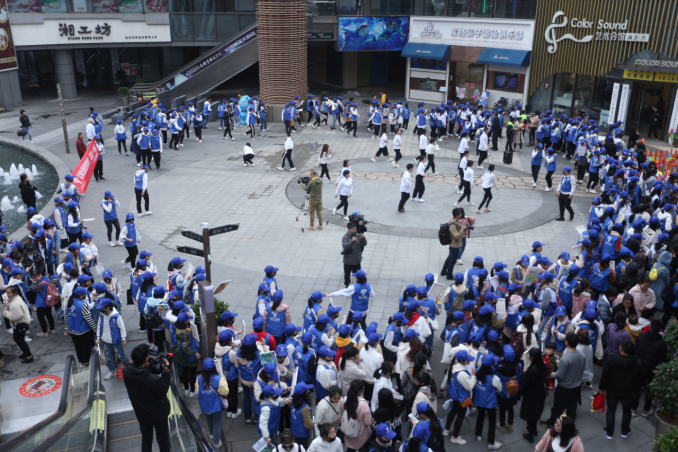 步步高·梅溪湖新天地的活动主要分为两个部分:“今天不说话”音乐快闪与百米画卷活动。在音乐快闪活动中,来自八所大学的七百多位志愿者穿梭通过商场的四个核心区域,分别喊出“让行动温暖一座城”“让爱来赶碍走”“用阳光透进紧闭的门,温暖每一个角落”“爸爸妈妈假若我很不同”四句不同标语。呐喊声吸引了众多市民朋友围观,现场气氛不断被推向新的高潮。当志愿者到达时尚广场后进行第二项百米画卷活动。志愿者手持自闭症儿童的手绘画作,并拉起印有活动口号的横幅。静态的画作和动态的表演相得益彰,活动最后在全体工作人员和志愿者的合影中完美落下帷幕。